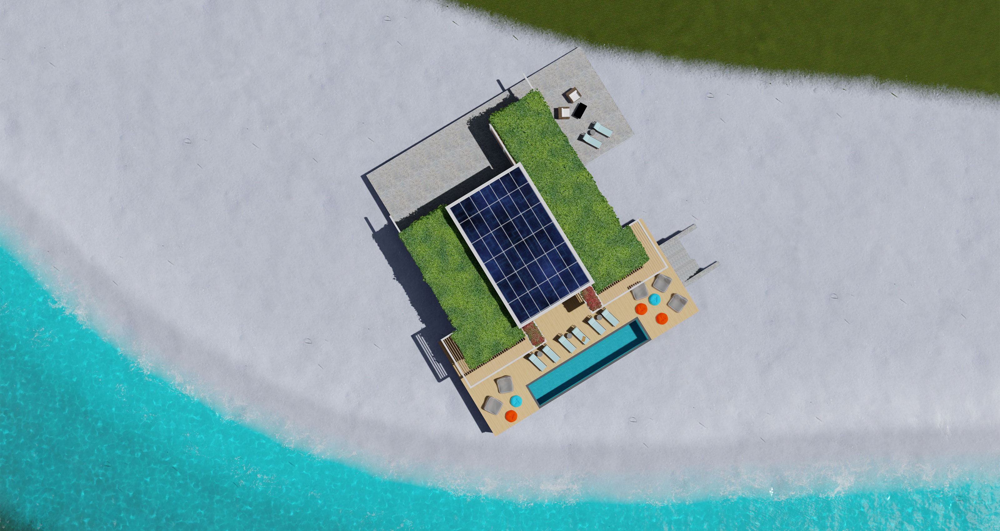 The audacious eco-luxury plan outlines a completely sustainable, fossil fuel-free and fully reversible, pre-engineered island-and-beach property development, fitted with an entire resort-like infrastructure that includes a reception, pool, clubhouse, gym and spa, in addition to timbered beachfront suites. Silent-Resorts supplies everything for the autonomous “land and sea” property that runs off solar grids.