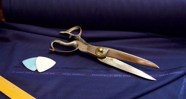 That link-up began when Adidas visited Henry Poole’s shop and chose a chalk-stripe flannel from the archives.