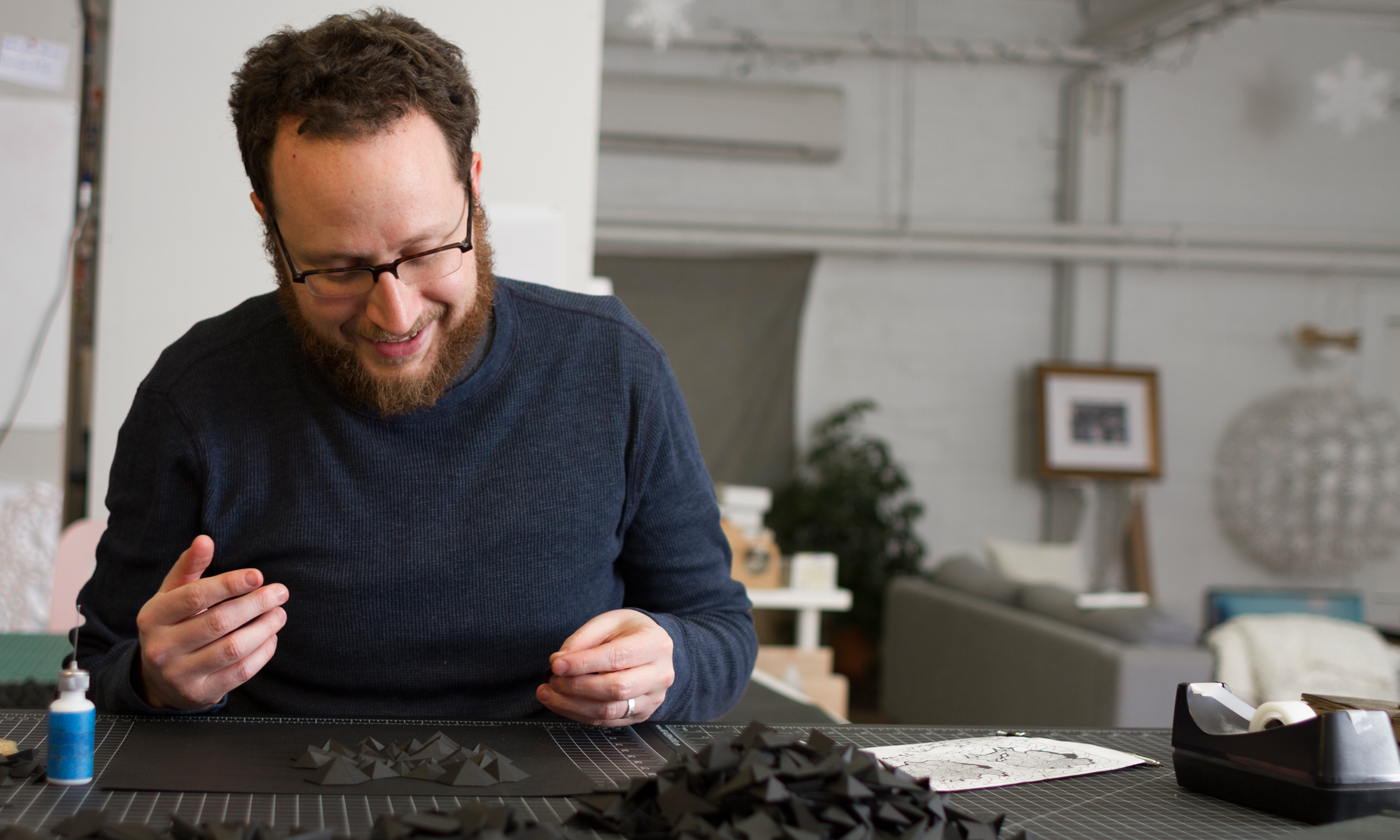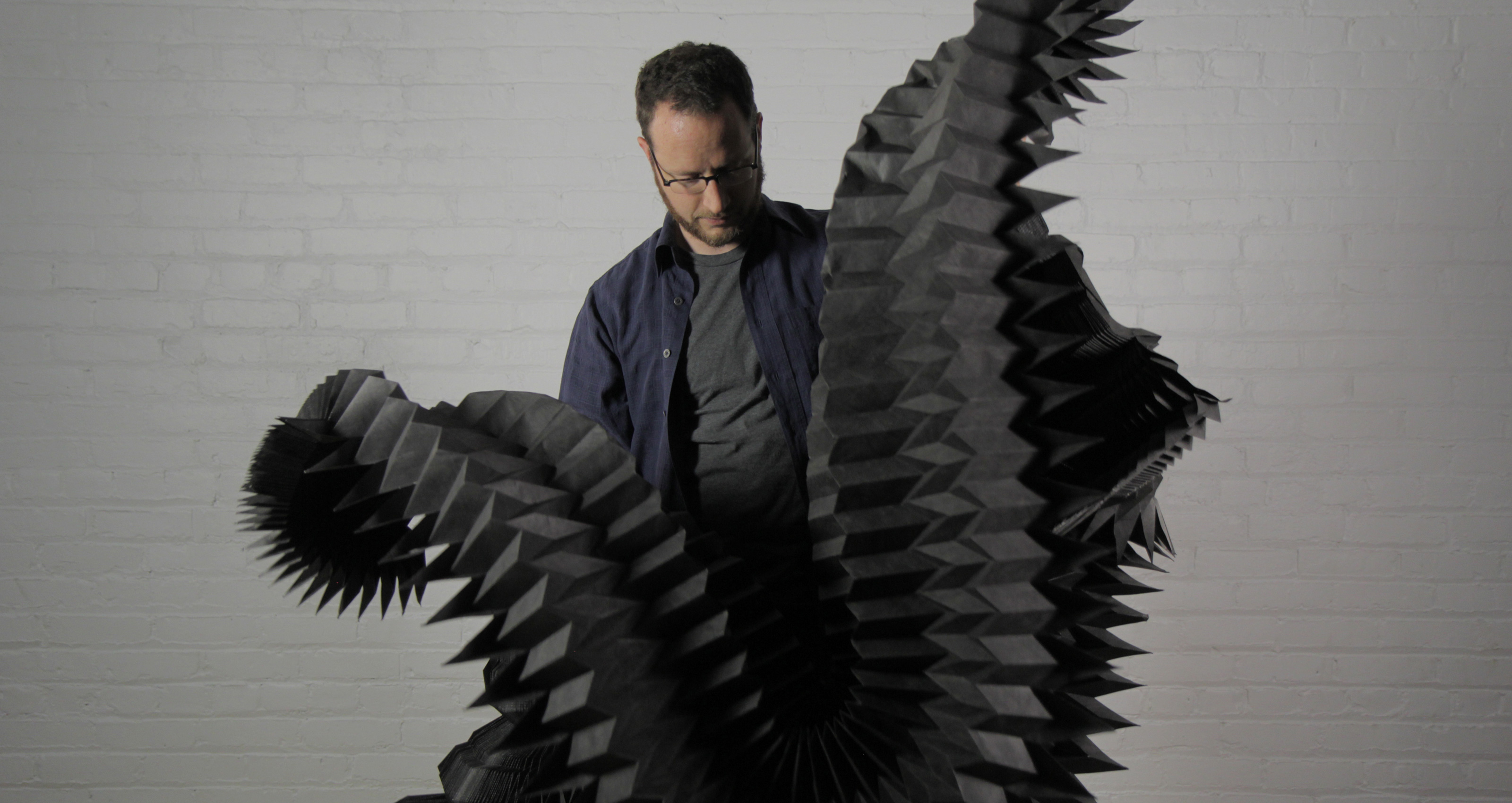My process is extremely varied from piece to piece. Often I start without a clear goal in mind, working within a series of limitations. For example on one piece I'll only use curved folds, or make my lines this length or that angle etc. Other times I’ll begin with an idea for movement and try to achieve that shape or form somehow. Along the way something usually goes wrong and a mistake becomes more interesting than the original idea and I work with that instead.