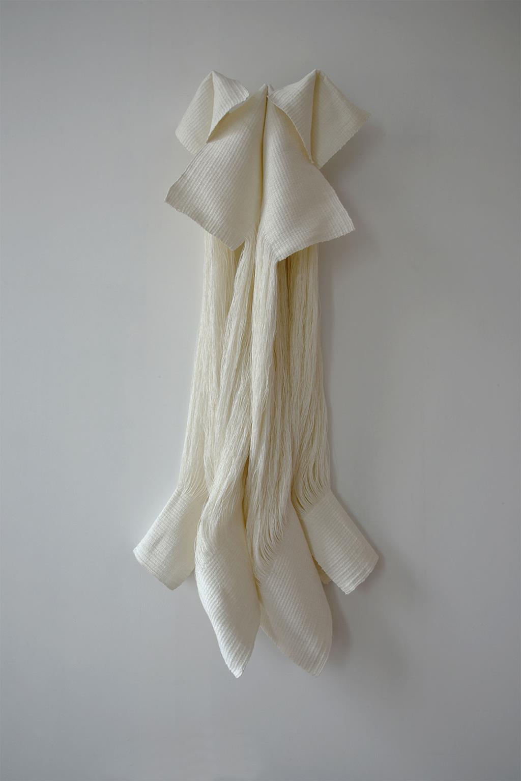 Sallin highlights how the medium is so dependent on the artists’ relationship with the cloth itself, arguing that “to be a good textile artist, you need to know your materials intimately – literally at your fingertips. Each fabric – satin, organza, habotai, chiffon – reacts differently: it absorbs colours, directs the inks, and behaves according to its weave.” Fashion can be a rich source of inspiration: South-of-France-based artist Agnès Dosmas Krier credits designers like Issey Miyake and Comme des Garçons for her draped works. “Textile art is a deeply tactile form,” she says.