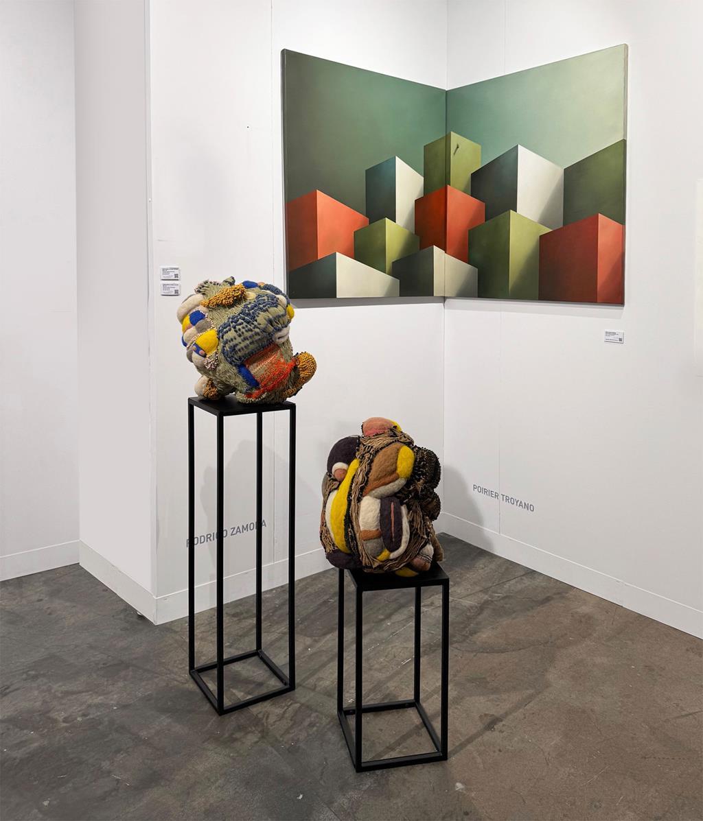 In the end, there is something deeply enduring and warming about the medium, says Marbella, Spain-based gallerist Isolina Arbulu, whose artist, Marie Isabelle Poirier-Troyano, also took part in Volta Basel this year. “Textile art has a unique warmth and intimacy that often draws collectors in,” muses Arbulu. “There’s something deeply human about it – viewers can immediately sense the time, care and craftsmanship that go into each piece. The tactile quality, the visible labour and the intricacy of the technique tend to leave a lasting impression. It invites a slower kind of looking, one that connects people not just to the artwork, but to the hands behind it.”