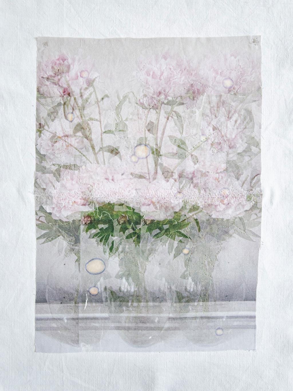 Outside Paris, American-born artist Michele Landel’s arresting pieces disrupt traditional paintings with machine embroidery. One of her collectors, Mary Souza, was drawn to the soft form of her works. “I was able to visit Michele in her Sèvres studio and bought a wonderful piece, For There She Was 68. I love looking at this piece every day, throughout the day, as I navigate my life. To me, it evokes the power of women to manage their worlds creatively and with beauty.”