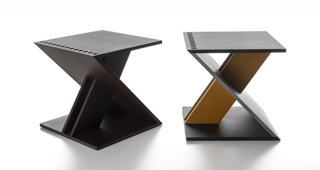 Swiss architect and designer Mario Botta’s aptly named Zeta stool playfully explores the interaction of horizontal and oblique lines.