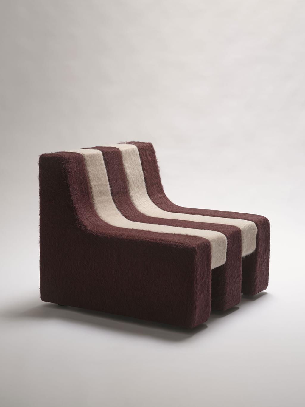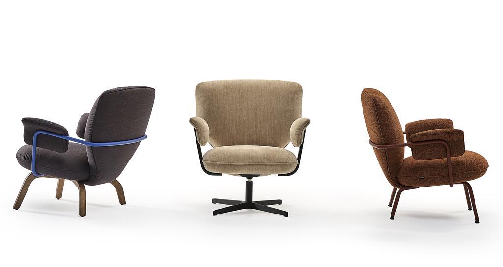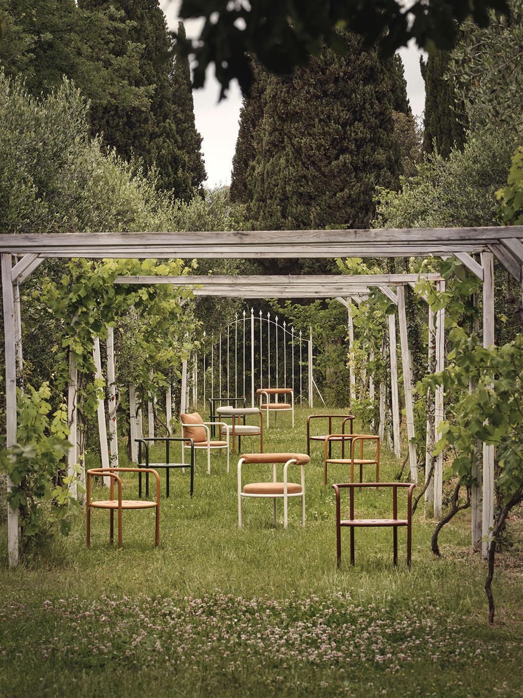Of-the-moment, LA-based designer Giampiero Tagliaferri’s Libra chair riffs on 1970s aesthetics, pairing distinctive tubular legs with elegantly piped upholstery to striking effect.