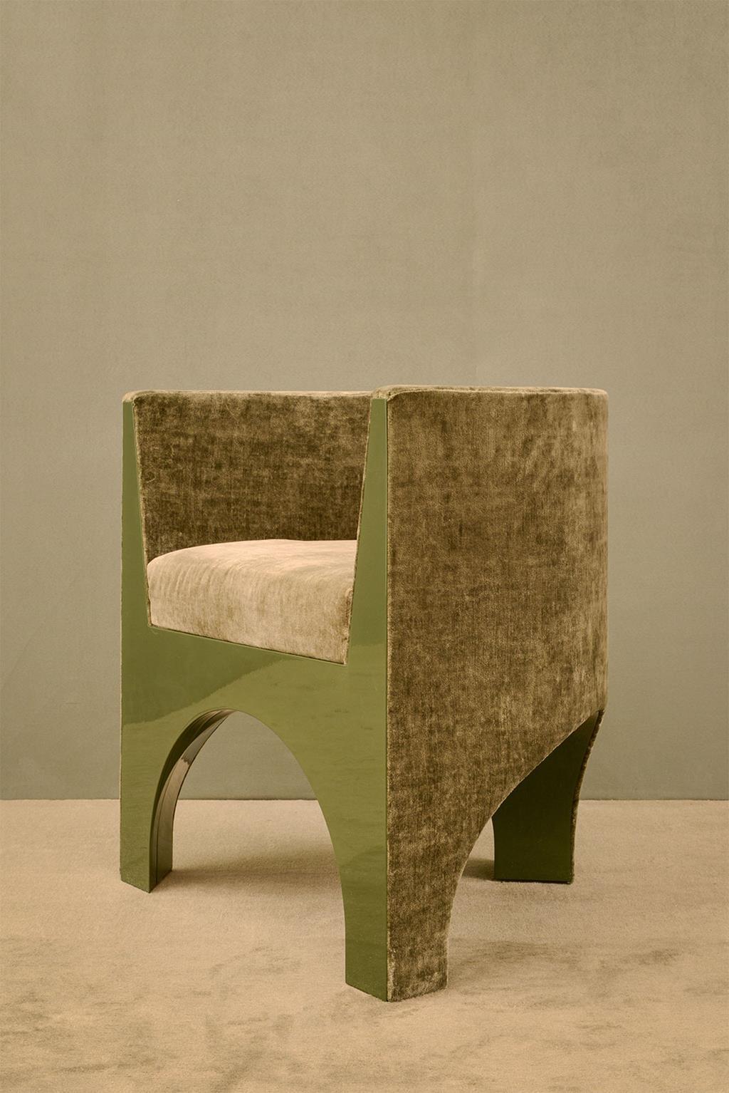 Inspired by the Monstera leaf, the Planta by Yonoh chair harmoniously combines a soft, broad backrest with plush arm pillows for a full embrace.