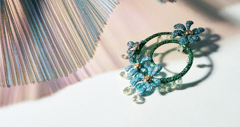 CHOPARD titanium earrings set with diamonds, Paraiba tourmalines and emeralds