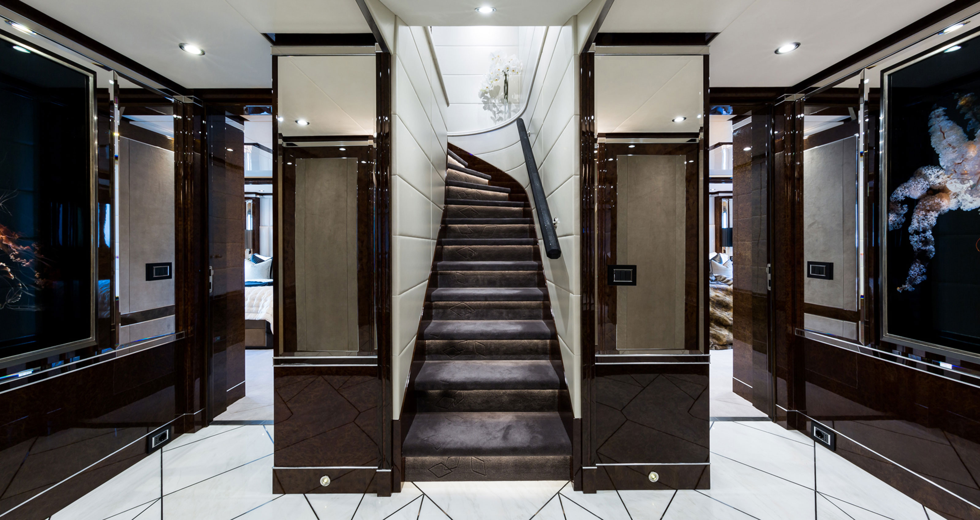 The 63m steel hull with aluminium superstructure was constructed in 2015 and accommodate a total of 12 guests in six well-appointed cabins featuring bespoke furniture, as well as Italian marble in all en-suite bathrooms.