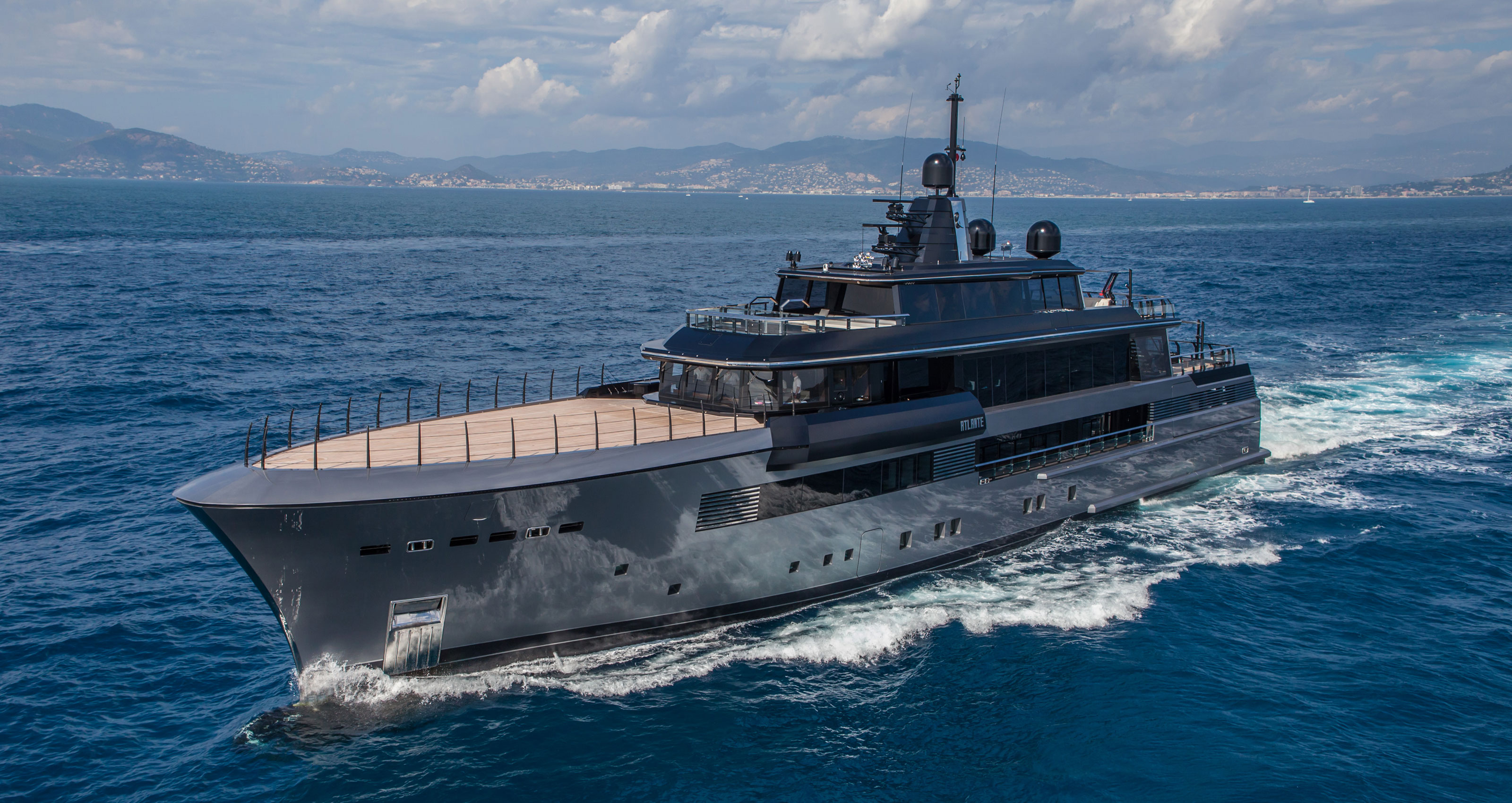 Atlante is powered by two Caterpillar 3512C engines that propel the craft to a top speed of 15 knots and she can accommodate 12 guests and 13 crew.