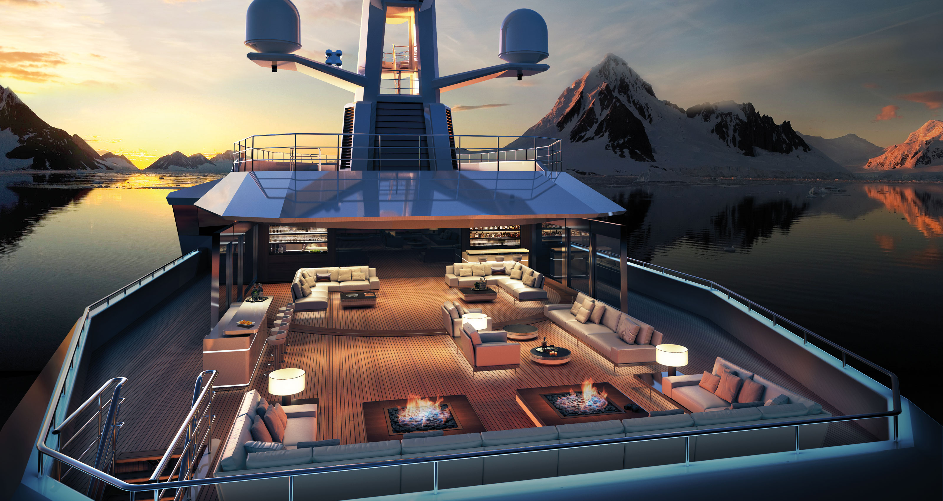 Three variants at 65, 90 and 100 metres are purpose built both to cruise at ease in the Med and cut through waters capped with up to 1 metre of ice. Facilitating 40 days journey without port call and boasting room for up to two helicopters (on the larger SeaXplorer 100) plus a suite of tenders and toys, including submersibles for exploring beneath the waves, the picture is painted of a high-tech cruiser in which to recreate historic routes of explorers past.