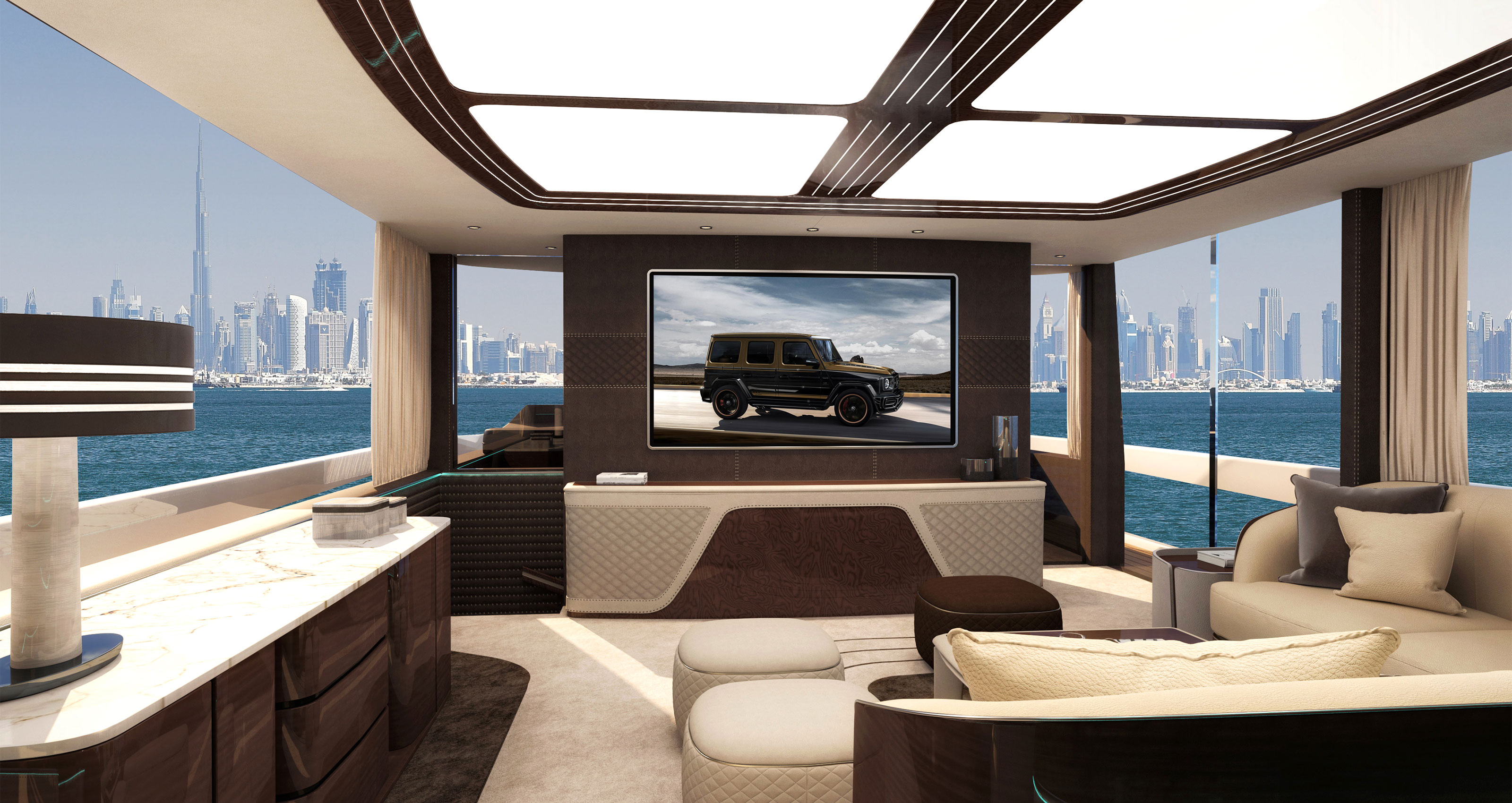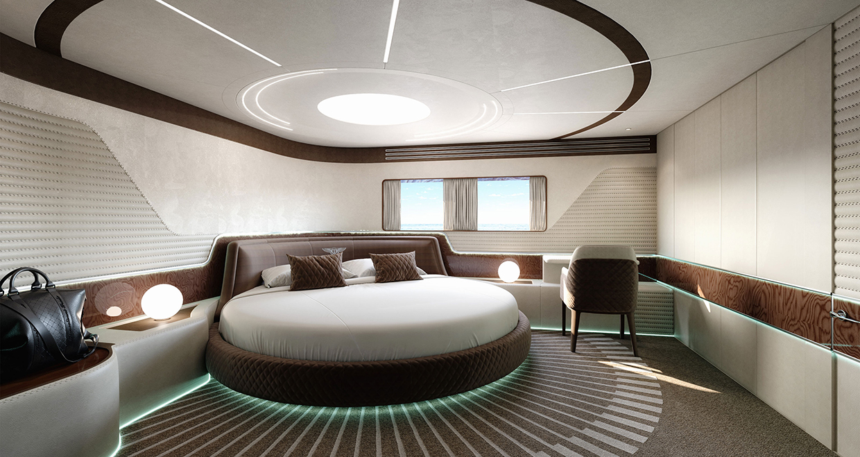 Inside, the rich and sophisticated interiors were designed by Giuseppina Arena and feature touches found in Klassen cars such as wood panelling and LED lights. The vessel features a forward salon and bar/galley area overlooking the aft beach club, which can remain open in summer and be turned into a winter garden during chilly evenings. Furthermore, there are four guest cabins, including a spacious master stateroom with a circular bed from the Bentley Home collection, and an owner’s bath finished in fine onyx and equipped with custom hammam.