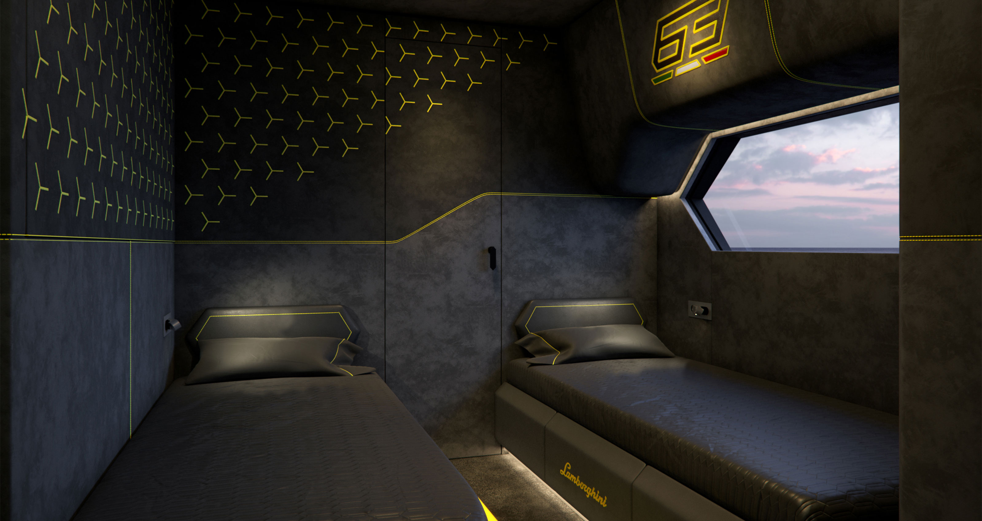 From an aesthetic standpoint, the boat’s exterior is meant to capture the spirit of the iconic lines of the Lamborghini Miura and Countach from the 1960s and 1970s. Further homages to the Italian manufacturer include a hard top inspired by Lamborghini’s roadster models, and the bow lights are a tribute to the Terzo Millennio. In the ship’s interior is Lamborghini’s signature styling – clean lines, hexagonal and “Y” details, and distinctly Made-In-Italy craftsmanship.