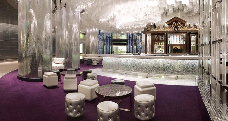 Named after the famous Vesper cocktail created by James Bond in the novel Casino Royale, Vesper Bar is situated within The Cosmopolitan of Las Vegas hotel and casino, adjacent to the lobby. Decorated with chandeliers, mirrored tiles and centred around a wooden liquor cabinet, the bar features modern décor and a vivacious ‘70s vibe. A rotating menu of signature Vesper cocktails adds a clever and delicious twist to long-forgotten recipes, alongside James Bond-worthy classics.