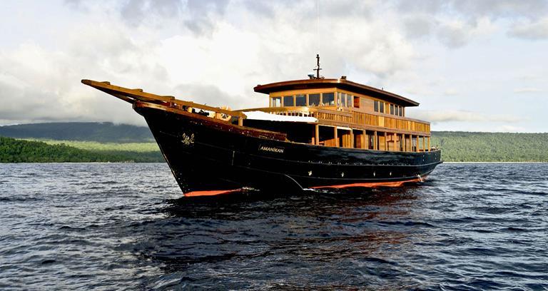 The remarkably biodiverse Raja Ampat is the location for sailing adventures aboard the phinisi Amanikan between November and February. Fusing the romance of traditional spice trading vessels with the celebrated lifestyle concept of Amanresorts, the three cabins, including one master suite, boast custom-made teak and rattan furniture fused with a palette of white, honey and beige. At other times of the year the sublime vessel offers Komodo Expeditions exploring the Nusa Tenggara island chain as well as the World Heritage Site of Komodo National Park.