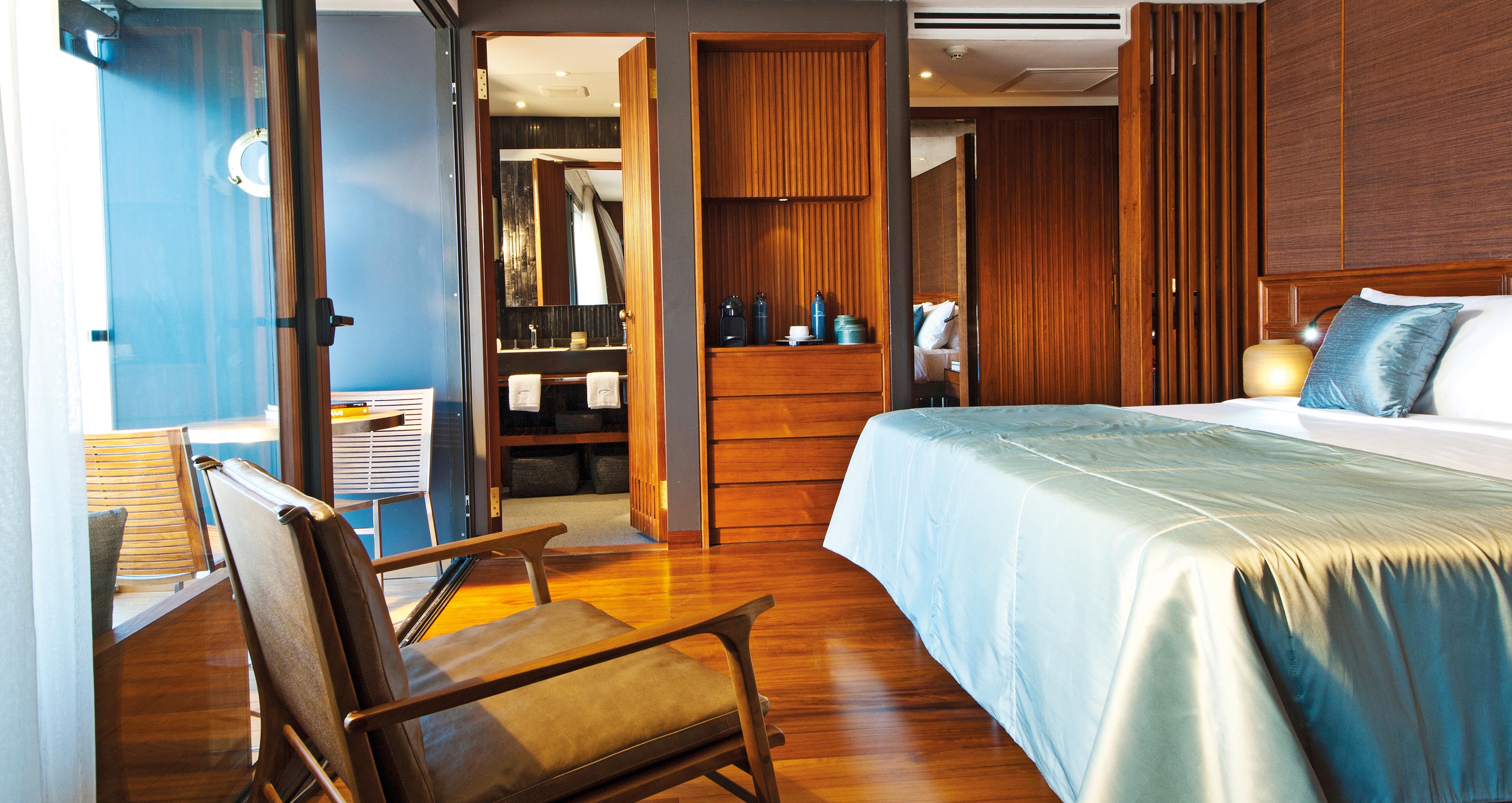 Architect David Hodkinson of Vietnam’s Noor Design created the subdued, modern interiors using local wood and stone with Indochine touches that reflect the surroundings, which provide an ever- changing backdrop through spans of floor-to-ceiling glass. Four of the 20 cabins – each measuring 30 square metres – connect for families, and eight of them feature outdoor balconies where guests can enjoy a nightcap under a starry sky. A spa, fitness room, screening room, game room, sundeck and swimming pool offer opportunities for diversion and indulgence between excursions.