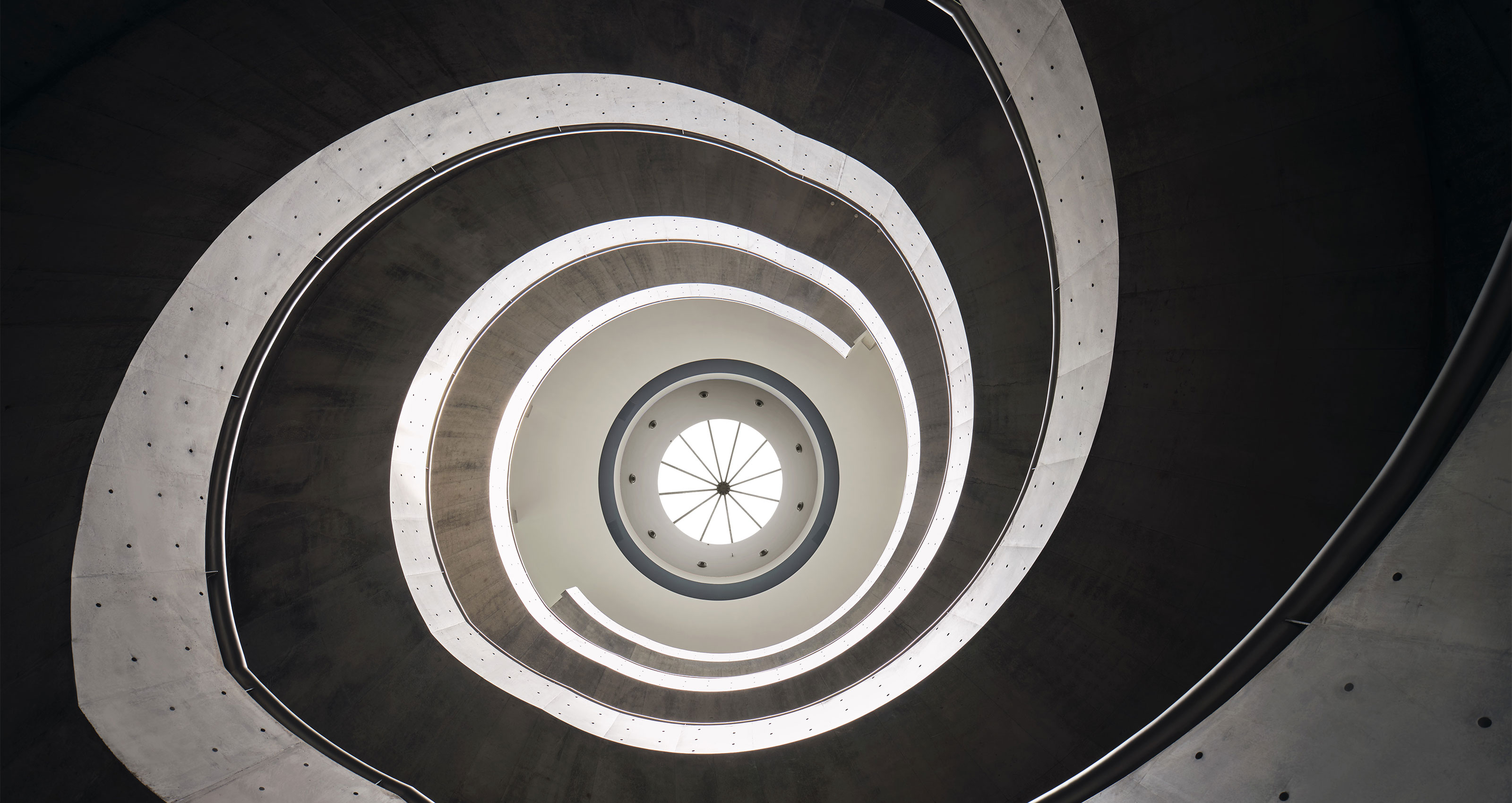 We approached the design by challenging the notion of “dynamic geometry”, and circular form gives a sense of tension, rhythm and balance. These circles constructed the space of the building through ripple-like expansion: from top to bottom, with the overlapping of four circles. With each area’s clear-cut periphery, an enriched variation effect is created through the interaction between spaces.