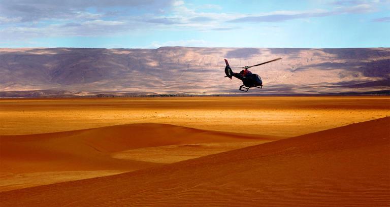 Lift off by helicopter from colourful, chaotic Marrakech bound for Morocco’s spectacular desert dunes with a singular Sahara experience. Tailored tour operator Blue Parallel arranges the logistics for a seamless journey that carries travellers by private chopper from the luxury of Marrakech’s legendary La Mamounia hotel to a decadent desert camp – outfitted with antiques and butler service – in the Sahara. Guests spend the night under a star-filled sky before boarding a helicopter for the onward flight to the remote kasbah Relais & Chateaux property, Dar Ahlam, and the Skoura oasis.