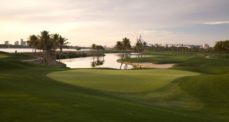 On Dubai’s glitzy marina waterfront, Dubai Creek has been providing the city with championship golf since 1993, its distinctive sail-shaped clubhouse nodding both to the city’s maritime history and the current purpose of the Marina in which it stands. An oasis of groomed, palm-lined fairways and peaceful water hazards, it offers an 18-hole, par-71 course alongside a floodlit Par 3, plus a myriad of top-notch club lifestyle amenities – fishing, a gym, and bespoke wellness treatments, fine dining and lounges.