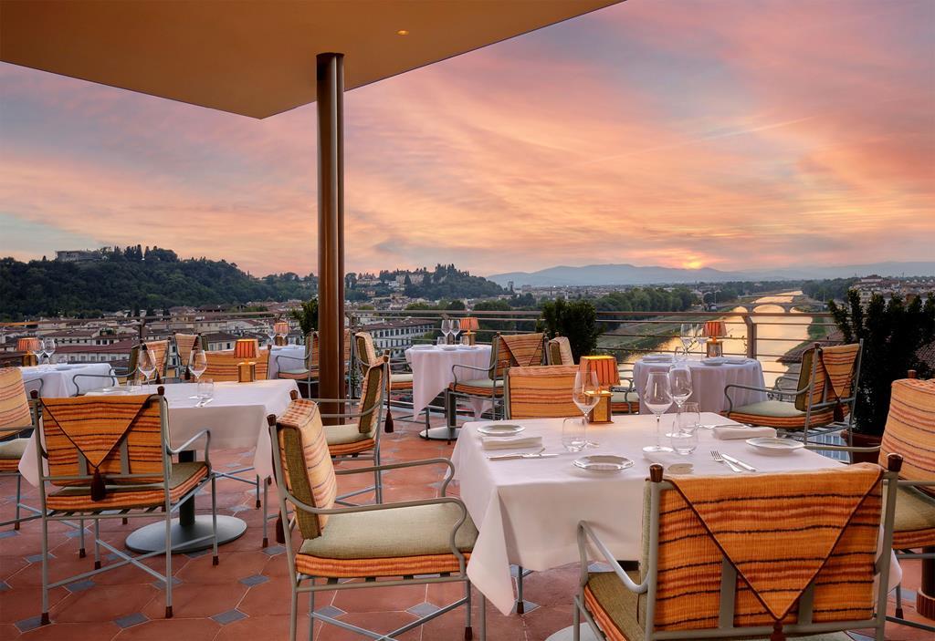 The striking view of the Arno from this sixth-storey eatery delights the eyes, while chef Marco Migliorati’s cuisine pleases the palate. A tribute to Renaissance figure Cosimo de’ Medici, it features dazzling interiors by Martin Brudnizki and bathrooms fitted with turtle-shaped faucets.