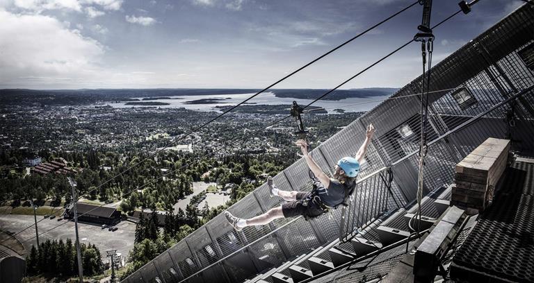Atop the world’s oldest ski-museum, the iconic Holmenkollen ski-jump and a zip-line adventure