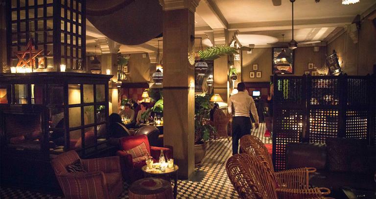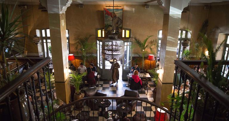 Kick back in the history-rich, atmospheric surrounds of Place du 16 Novembre, where you’ll dine amid copper-studded wooded chairs, potted plants, black and white check tile floors and moulded mirrors. Chef Philippe Duranton plates fare worthy of a traditional Gallic brasserie; scrumptious seasonal dishes created with ingredients from top butchers and gardeners, and from his own nearby vegetable patch. A more Moroccan tint comes from the monkfish and prawns tajine, which stands out among the African options.