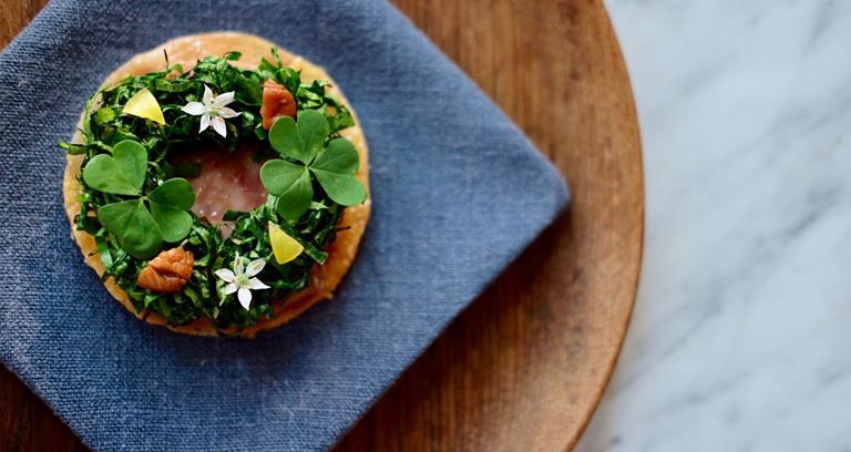 Serving two modern tasting menus (one standard and one vegetarian), chef Arora creates playful and unpredictable dishes laced with the culinary influences from both regions such as a spicy duck doughnut and unripe jackfruit and pickles.