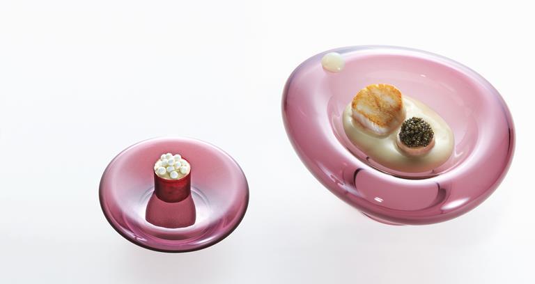 Diners sit at a long, curved table which snakes through the restaurant and faces the kitchen, where they can oversee every step that their food takes in its preparation. The chefs combine international ingredients into unique compositions before the guests’ very eyes, and their imagination and variety of dishes are unparalleled.
