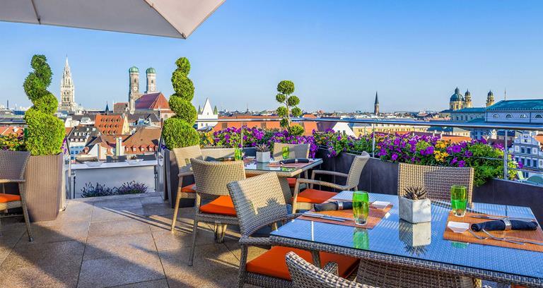 The China Moon Roof Terrace offers discerning local and international visitors a cool yet sophisticated ambiance on the eighth storey of the Mandarin Oriental – a high-rise height for the Bavarian capital. Between the glassy pool, vivid orange chairs and white umbrellas, guests enjoy a 360-degree view of Munich. The eclectic menu allows diners to choose between Asian curries or Lebanese specialities, from mezze to falafel and fattoush, as well as Western fare like Breton lobster, Bavarian tartar or American entrecôte.