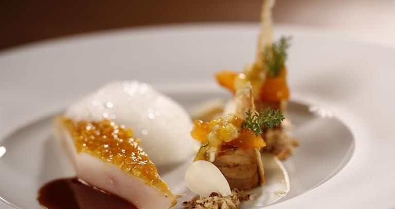 In cooperation with the haute delicatessen empire Käfer, chef Bobby Bräuer heads up EssZimmer in the BMW World, the company’s sleek exhibition centre and museum, embellishing classic French cuisine with Bavarian touches. Guests indulge in mains like rabbit and crayfish served with gooseberry, or Bavarian venison paired with Jerusalem artichoke in an understated, yet welcoming atmosphere marked by warm colours and dark leathers.