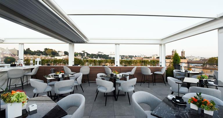 Following dinner, opt for a glass of wine at the Acquaroof bar, which affords spectacular views of the Eternal city as the sun sets.