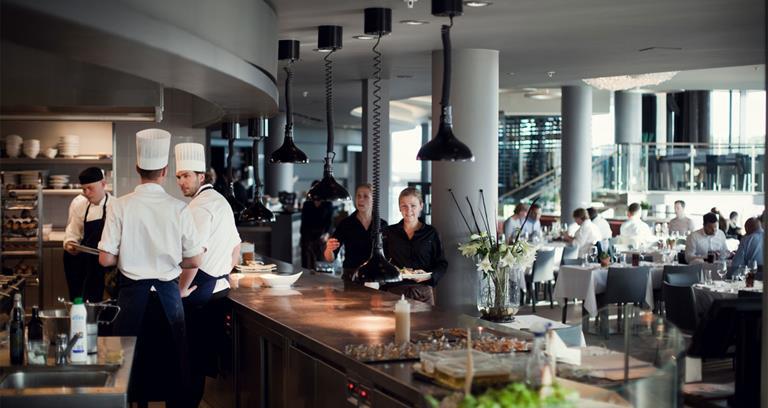 Lobsters and crabs in driftwood-styled tanks beckon gawkers in at this dapper seafood restaurant/gourmet market fronting the fjord near Aker Brygge. Servers intone that almost 80 per cent of the food served comes from Norwegian waters, with the menu changing twice monthly. If you’re lucky enough to find halibut from Nordland or king crab from Varanger on that list, it’s not to be missed. White-linen-topped tables glow with candlelight and floor-to-ceiling windows bring the glittering water views inside.