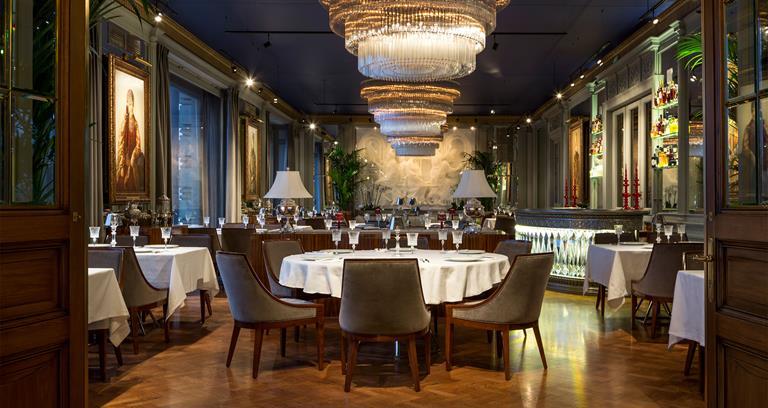 The lavish setting of this must-visit inside the Hotel National is entirely appropriate. With furnishings such as the majestic chandeliers and views out across Moscow’s historic rooftops – including the Kremlin – as the backdrop, Beluga’s dining room is the place to enjoy an unprecedented 24 varieties of caviar. You can sample this delicacy in a tasting menu, or in sandwiches. Aside from caviar, the restaurant is not exactly lacking in its other dishes: try the vinegret salad and Sosva herring or the Kiev cutlet mixed into tantalising ice cream.