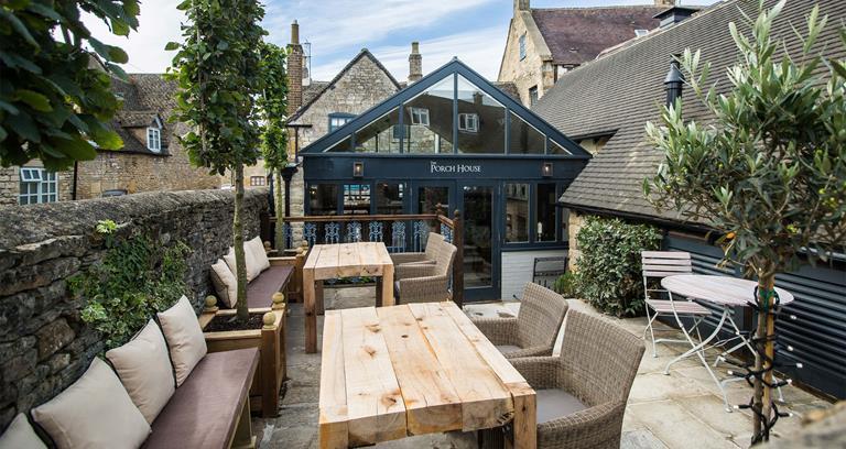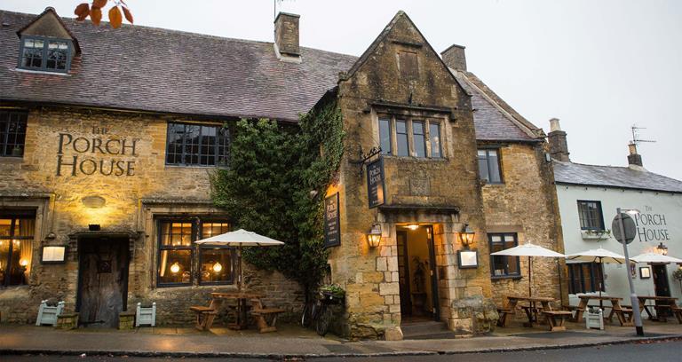 After sizeable investment by owners Brakspear Breweries, the Grade II-listed Porch House in the eye-catching Georgian market town of Stow-on-the-Wold is a timeless wonder. Head chef Stephen Small purveys a regularly changing menu in a warren of low-ceilinged dining and drinking spaces consisting of restored fireplaces, exposed beams, flagstone floors and mix-and-match chairs. A private dining parlour offers exclusivity and a tailored menu to parties, and the Pub and Conservatory area pours Brakspear real ales, and other local brews.