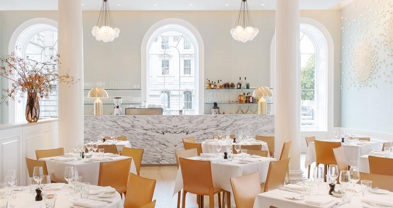 The 19th century drawing room of Somerset House celebrated its first opening to the public in over 150 years in 2014, when Australian Michelin-starred chef Skye Gyngell opened her warm and welcoming restaurant Spring. Collecting culinary inspiration while shopping at the Marylebone farmers’ market, Skye Gyngell has crafted a menu that features daily lunch and dinner specials showcasing the best of seasonal produce. The 100-cover dining area is flooded with natural light, featuring large windows, tall ceilings and an atrium garden surrounded by olive trees at its centre. Dishes such as wild sea bass with porcini, scallops with green tomatoes and fig galette with roasted fig leaf ice cream showcase not only elegance but also the chef’s heartfelt cooking.
