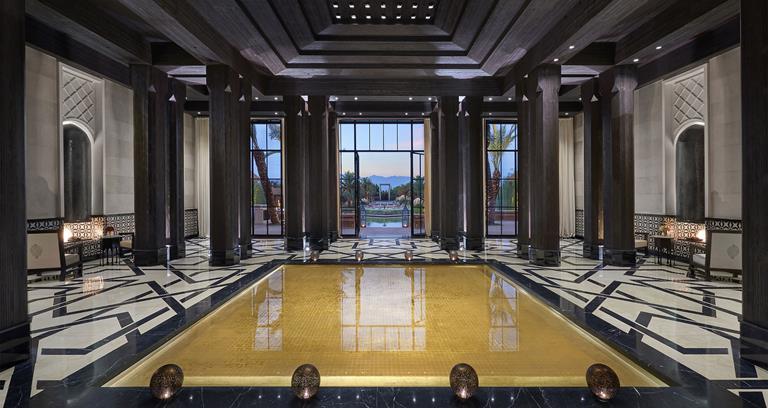 Enjoying a supreme position on Route du Golf Royal amid some 20 hectares of verdant olive groves and landscaped gardens, the sense of away-from-it-all is an intoxicating reality here, despite the hotel lying only 10 minutes from Marrakech’s iconic Medina and 15 minutes from Menara International Airport. Across 63 suites and villas, guests can strike out into the grounds and enjoy traditional Moroccan cuisine from chef Meryem Cherkaoui, eclectic Cantonese flavours at Ling Ling by Hakkasan, direct access to Royal Golf and Golf Al Maaden, and the sprawling 1,800sq m spa.