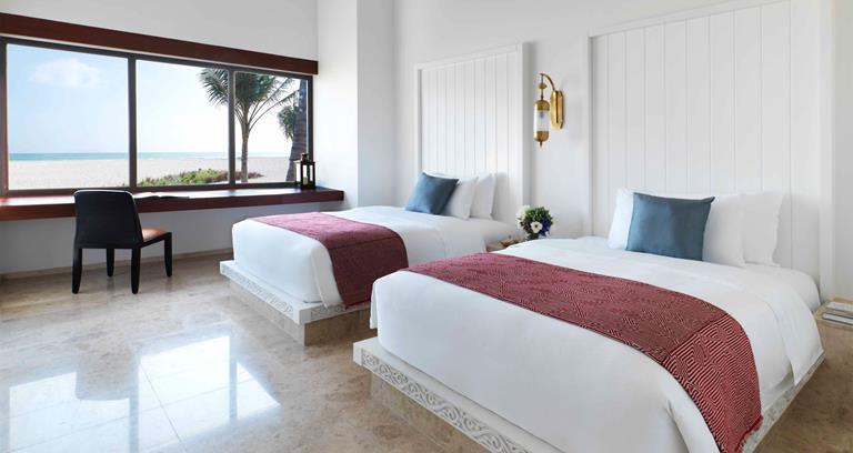 This massive resort hugs the beaches on the south coast of Dhofar, while a freshwater lagoon is nearby. When it comes to accommodation, take your pick from 96 villas, 30 sea-view rooms or 10 deluxe rooms, all kitted out in respectful Omani interiors and featuring swish marble bathrooms. The setting is conducive to holistic activities; yoga classes and skincare treatments are just a few of those on its roster. For food, try Mediterranean classics or Asian offerings, or enjoy a romantic, tailored meal on the beach.