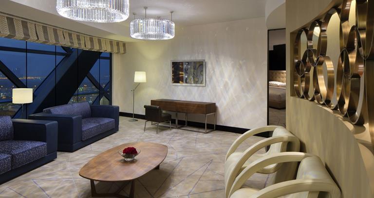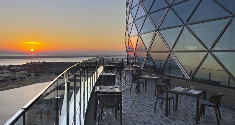 An improbable hotel at the centre of town, its 189 rooms, each with spectacular panoramas, occupy 15 storeys of the heavily leaning Capital Gate building, part of the Abu Dhabi National Exhibition Centre. Floor-to-ceiling windows throughout the property do much to highlight the utterly unique placement of the hotel. In-house dining options include the spectacular 18°, an eastern Mediterranean restaurant with a trio of show kitchens and a breathtaking outdoor terrace on the building’s 18th floor; the Rayana spa, meanwhile, entices with a novel “desert wellness” concept using locally sourced materials for its treatments.