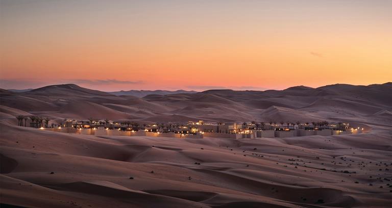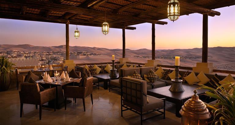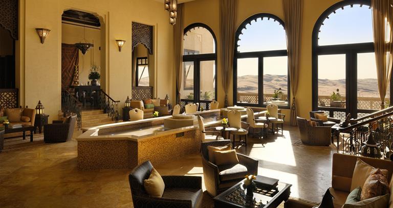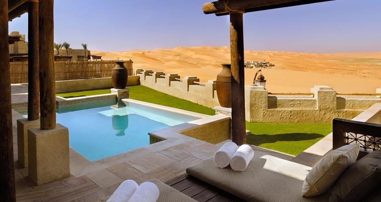 Sculpted like a sandcastle and lit by torches and lanterns galore at night, this hotel does a fine job of feeling more intimate than its 206 room size suggests. This isn't the place for sea views, the interior location does however make for IMAX-worthy panoramic views of the surrounding dunes. The interior is the real show stopper though. Avoiding clichéd Gulf state bling, the earthen toned rooms are filled with paintings and curios depicting traditional Bedouin life. Going deeper into desert life is easily done; the hotel lays on treks across the fabled Empty Quarter by 4 x 4, foot or camel.