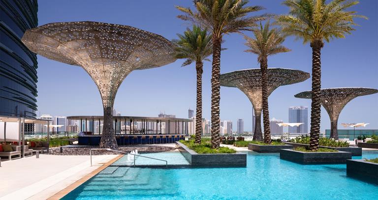 Sited in a skyscraper on the quickly developing Al Maryah Island, this chic property boasts 189 top-spec accommodations, each with either views of either the gulf or the city ahead. The 34-storey glass-encased waterfront tower is also, for the purposes of medical tourism, handily next door to the Middle Eastern outpost of the famed Cleveland Clinic. Furnishings are modern with warm, muted colours and a touch of Middle Eastern flavour. The Hidden Bar, meanwhile, is a mysterious hideaway with cocoon seating and gliding veiled drapes.
