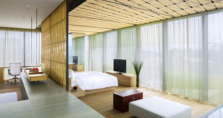Situated at the Taikoo Li Santilun, this contemporary Kengo-Kuma-designed space turns the concept of five-star accommodations on its head, with casually adorned staff and a lobbyless check-in. Its 99 studio-style rooms make use of high ceilings and lashings of natural light to evoke an open, loft-like ambience, including the two-floor Penthouse suite, which includes a vast outdoor rooftop terrace. Diverse dining options encompass Mediterranean and Chinese flavours, while space to lounge and socialise can be found at trendy, Bedouin-style cocktail bar.