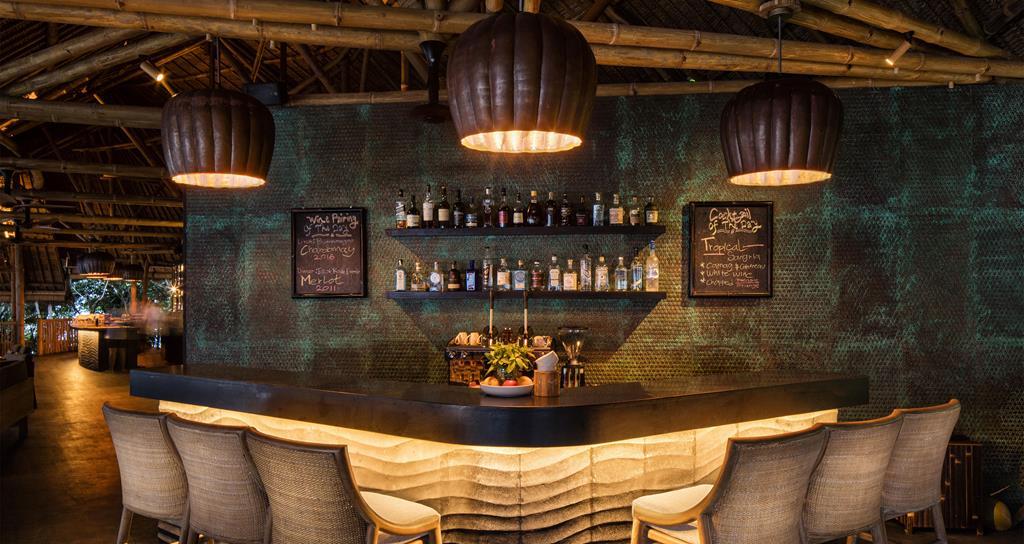 Most guests, however, barely stray from their villas except, each evening, to the Dodo Bar, a splendid structure with a spiral pagoda roof thatched in black Balinese temple grass and named after the extinct bird, whose closest living relative – the rare and extravagantly plumed Nicobar pigeon – is still found on Cempedak. From there, it’s a short walk along an elevated walkway to the restaurant, where every table has a sea view and there’s a large open kitchen.