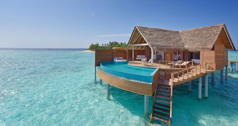 Touting its own brand of “reinvented luxury”, this inviting getaway on the Baa Atoll, near Hanifaru Bay, boasts its own coral reef, making it a prime destination for snorkelling or diving aficionados. Guest villas each feature their own freshwater pool, sundeck and hanging swing, while food options are light and authentic. A spa, meanwhile, draws on African healing traditions with treatments administered in an open-air, overwater pavilion; it’s a holistic wellness programme buttressed by daily yoga and meditation sessions to further enhance the resort’s restorative allure.