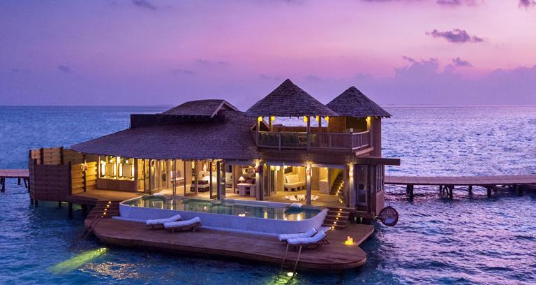 Encircled by a 5.6km private lagoon on the Noonu atoll, the five-island retreat is a newcomer to be reckoned with, offering up stunning accommodations that capture the luxe spirit the island nation is so well known for. From an overwater villa with a retractable roof to the three-bedroom Water Reserve, which comes complete with a waterslide leading into the ocean, the growing Thai chain puts emphasis on creating lifelong memories. The country’s first water-top observatory, a silent cinema at which guests tune in with Bluetooth headphones, an indulgent spa and a meditative ficus-hedge labyrinth add to its intoxicating allure.