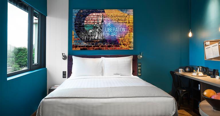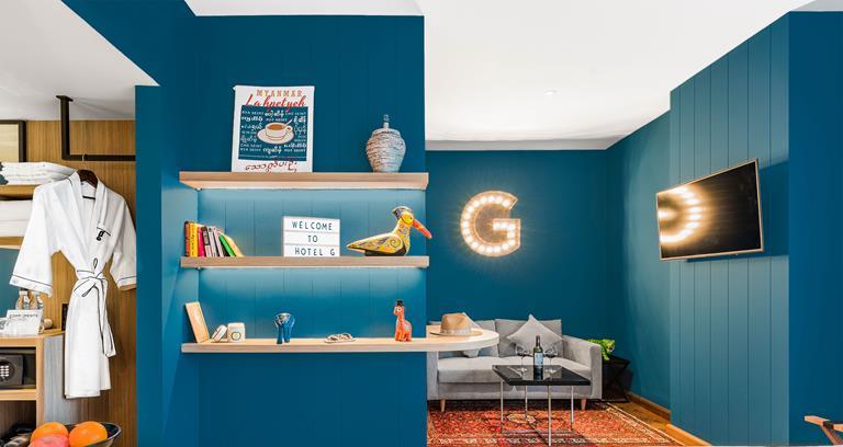 Lush colour and artwork greets guests of the Hotel G Yangon, throughout the 85 rooms, the gym, and the Californian restaurant and bar. The design is fitting, for this boutique hotel is located in the Yangon entertainment district. Modern comforts from furniture to technology, such as Smart TVs and e-readers, allow guests to stay connected, comfortable and up-to-date.