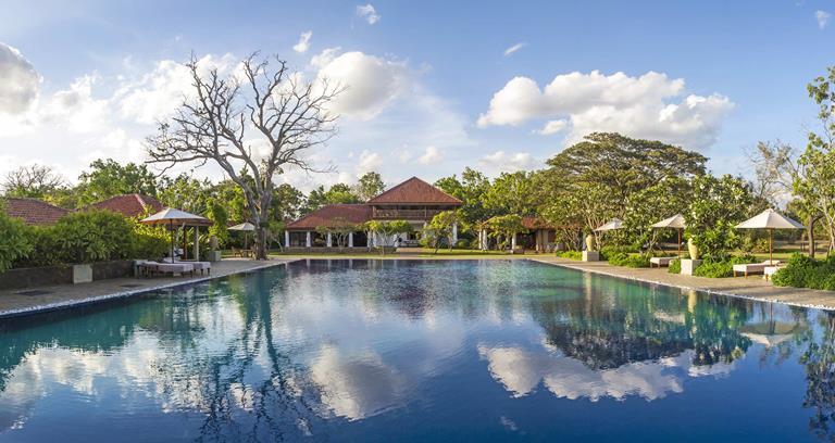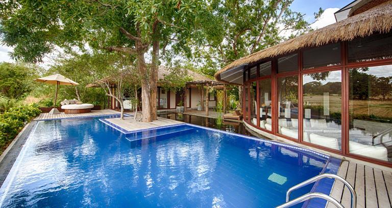 Situated inland on the ancestral estate of local nobility, Uga Escapes’ Ulagalla features a 150-year old mansion at its heart, with additional eco-conscious villas dotted around some 23 hectares of surrounding plains. A singular two-bed family villa is joined by 19 other contemporary abodes, all boasting glass walls and scenic views of the unspoilt natural surroundings. A spa created in the image of a cavern contrasts the myriad excursions available, such as the biodiverse delights of nearby Ritigala Sanctuary or, venturing out to the coast, wreck-diving from Uga Bay.