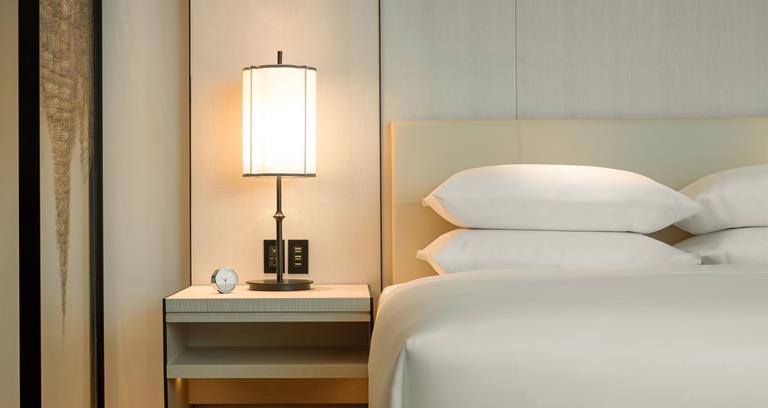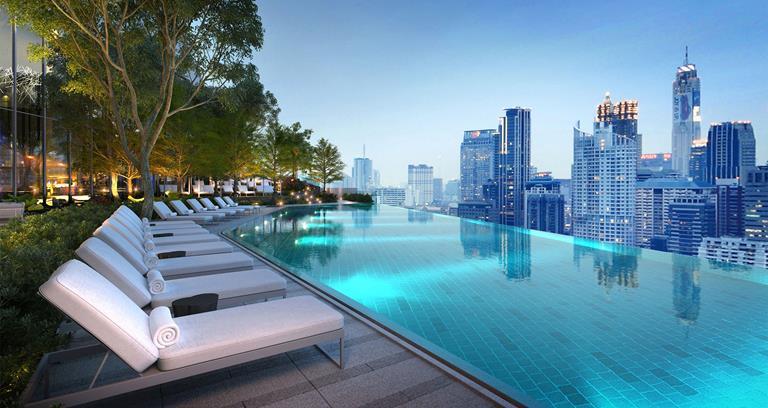 Before a well-earned dish at the Living Room, the Embassy Room (for a piscine treat) or a dram of specialist whiskey in The Bar, guests can splash away to their hearts’ content in the striking cliff-edge infinity pool, with views of the looming downtown skyscrapers.
