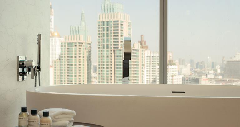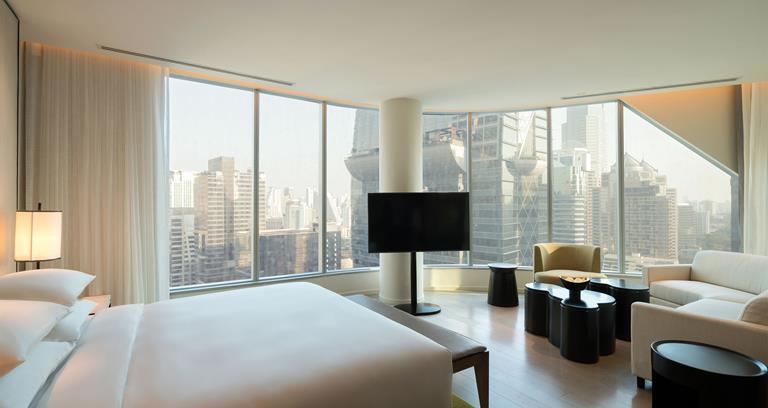 Guests entering the lobby here are greeted by imposing chainmail partitions and a magisterial stone statue – in harmony with what’s to come. The five-star, figure-eight-shaped Park Hyatt – in its elevated glory inside the central embassy – is where present-day amenities meet a bona fide Thai fabric running through the aura and the design ethos. Some 32 suites are among 222 guest rooms, including the colossal Presidential Suite, which is resplendently kitted out with a home theatre and gym. All rooms provide private, spa-palatial bathrooms.