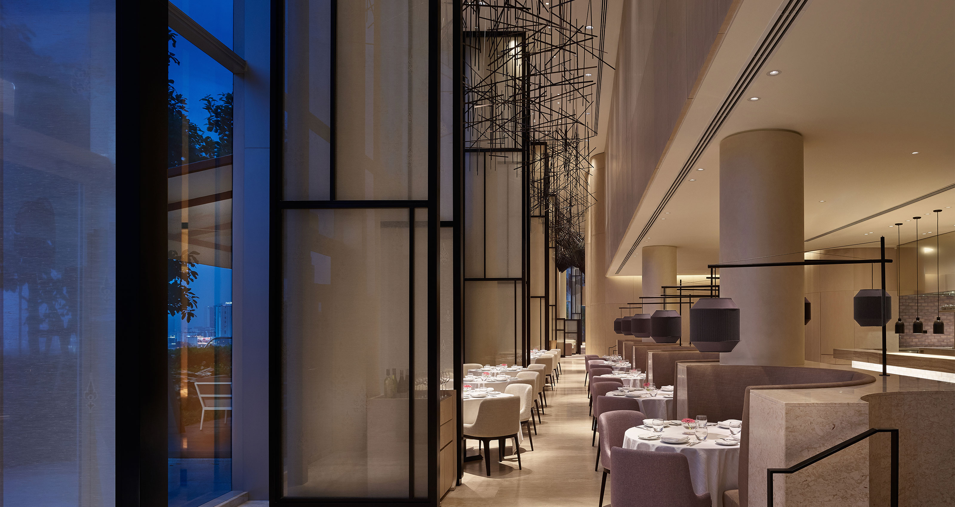 When staying at this long-awaited new luxury hotel, you enter an elegant, discreet world of style and sophistication high above the chaotic city streets below. The hostelry towers over a section of the upscale Central Embassy mall on grounds that once belonged to the British embassy. Sleek architecture and stylishly minimal interiors by celebrated design duo Yabu Pushelberg make this a tasteful, if sometimes a little stark, retreat, in a lofty perch.