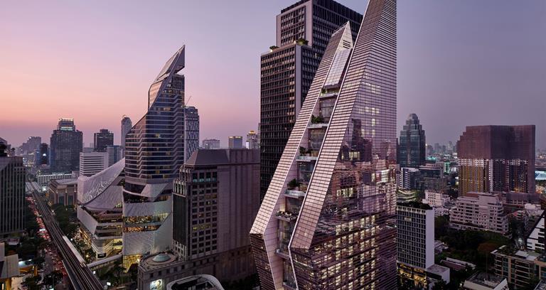 The humble, bent-angled façade at the Rosewood Bangkok is an immediate homage to Thailand. Designed to look like the famous bowed greeting, the wai, the marvellous architecture makes it perfectly acceptable to judge this book by its cover.