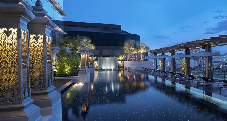 Located opposite the Rajadamri skytrain station (next to the Four Seasons), the St Regis is one of Bangkok’s newer hotels. Decorated in soothing tones of cream, taupe and blue, nearly all of the 227 rooms offer inspiring views of the city. Book a corner suite for space and guaranteed vistas. Three restaurants include an outpost of Zuma, whilst the 15th floor leisure area includes a gym and outdoor infinity pool. An Elemis spa has 16 treatment rooms and a host of therapies.