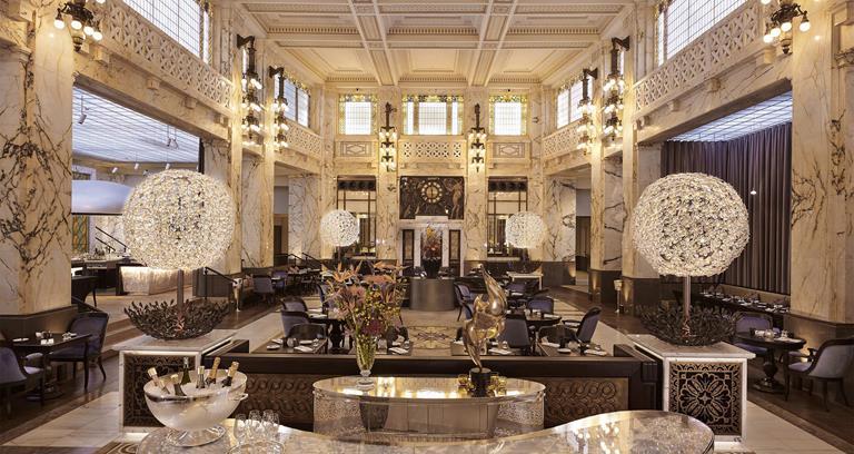 True to its location in the city's Golden Quarter, this opulent residence is resplendent with plush interiors, featuring no shortage of the precious metal. The theme, rather appropriate considering the building was once home to a national bank's headquarters, continues throughout the hotel. The pool, for example, housed in the former bank vault, glows with gold bar-shaped tiles and the all-day dining restaurant is called The Bank.